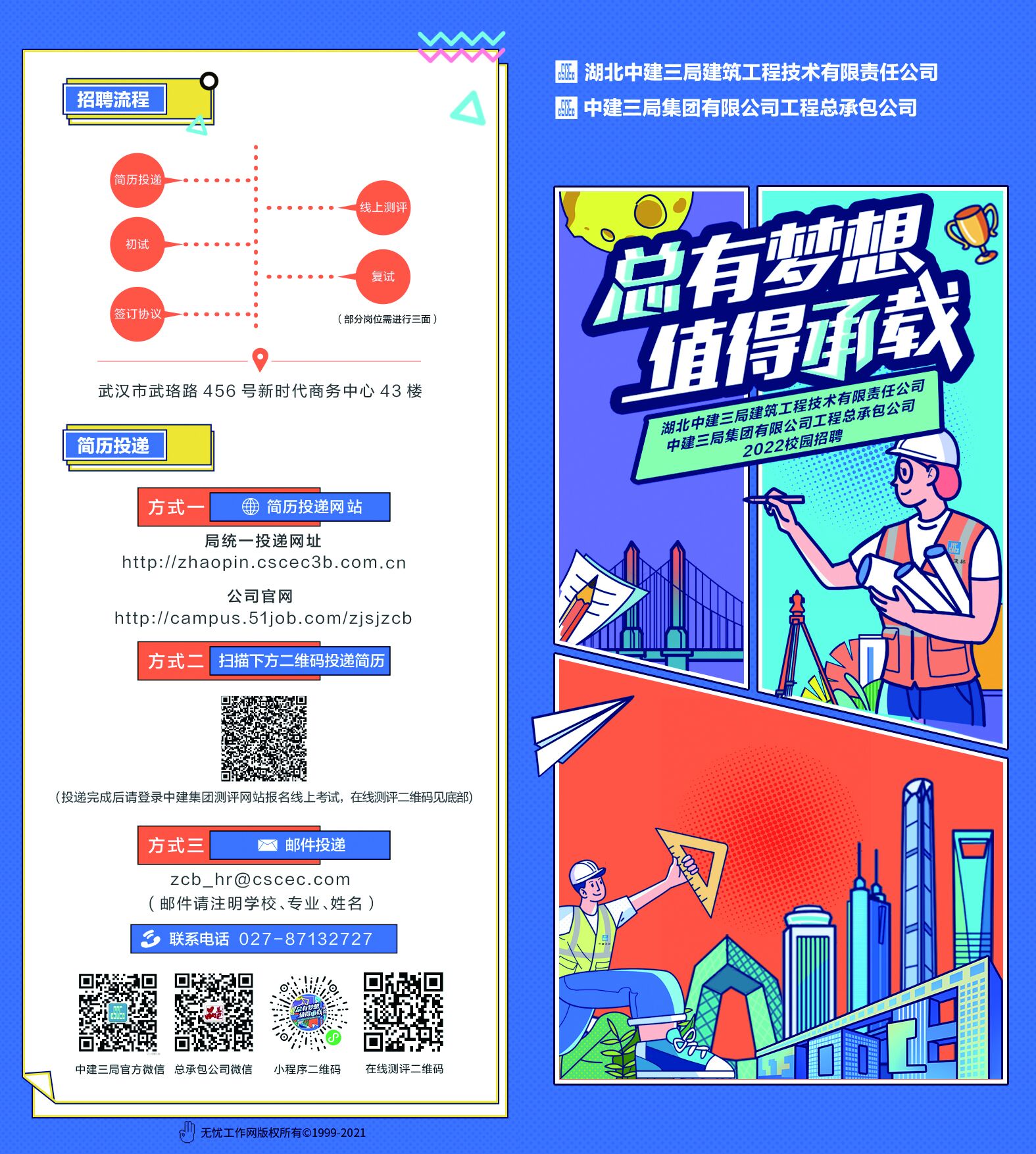中建三局总承包公司人力资源部电话:027-87132727。