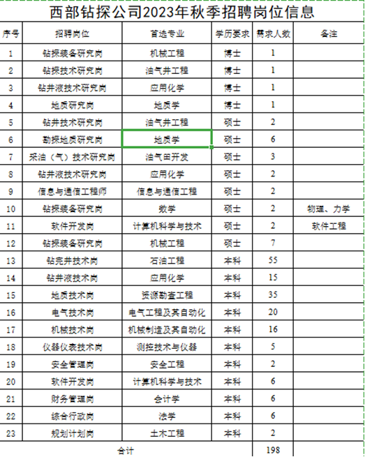 【国企招聘】中国石油集团西部钻探工程公司2023年高校毕业生秋季招聘简章