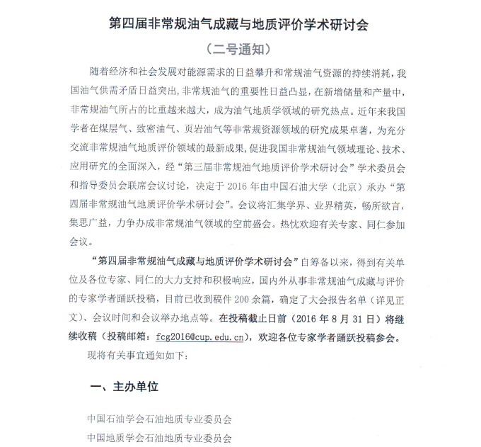 【会议】第四届非常规油气成藏与地质评价学术研讨会(二号通知)