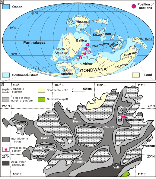 Huang, C., Gong, Y.M., 2016. Timing and patterns of the Frasnian–Famennian event: evidences from high-resolution conodont biostratigraphy and event stratigraphy at the Yangdi section, Guangxi, South China. Palaeogeography, Palaeoclimatology, Palaeoecology, 448:317–338.