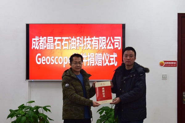 2018年12月18日,成都晶石石油科技有限公司总经理刘力辉一行到访地科院,在明辨楼A302室进行了GeoScope软件捐赠仪式。捐赠仪式由地科院党委副书记范起东主持,范书记简略介绍了地科院近几年的发展情况,尤其是学...[详细]