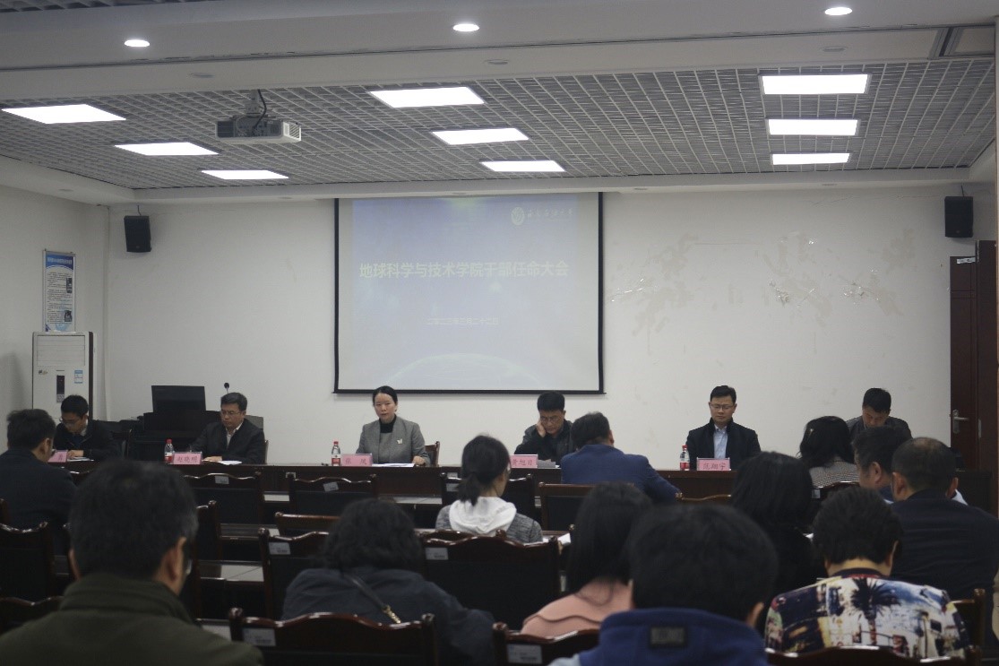 3月22日下午,地球科学与技术学院在明辨楼D404召开干部任命大会。学校党建办主任、党委组织部副部长张凤,地科院领导班子成员以及各教研室正副主任、教工党支部书记、科级干部、实验室主任、辅导员、教授会代表、...[详细]