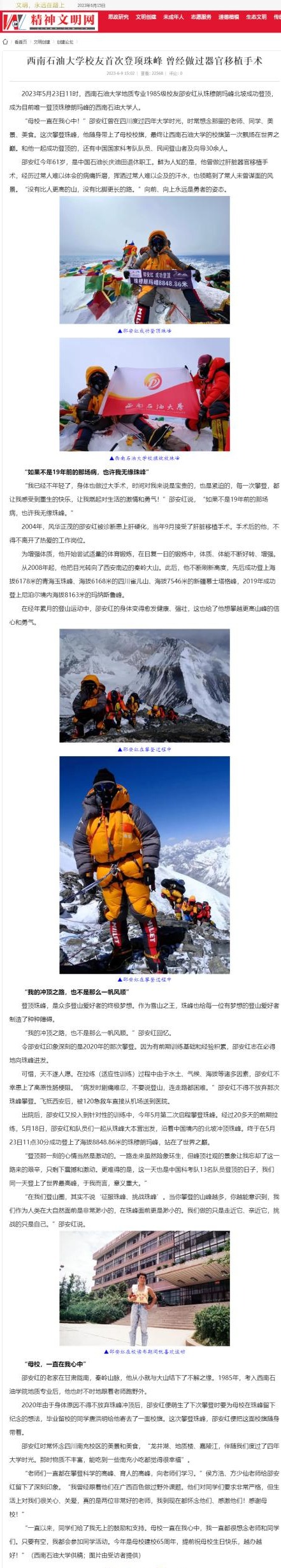 西南石油大学校友首次登顶珠峰 曾经做过器官移植手术