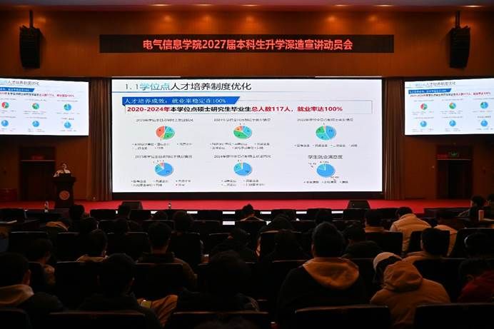 “这次动员会真是一场‘及时雨’!之前我一直纠结考研还是留学,也不知道该怎么规划复习。两位学长的备考经验特别接地气,让我学到了很多实用方法;方老师和罗老师的专业指导,帮我理清了考研和留学的核心思路,尤其是学院研究生的高就业率,让我更加坚定了留在本校深造的想法。接下来我会结合会议内容制定详细计划,全力以赴朝着目标努力!”2027 届电气工程及其自动化专业学生李同学会后深有感触地说。
