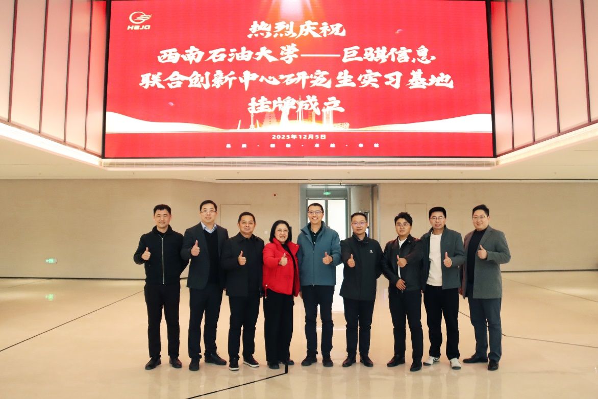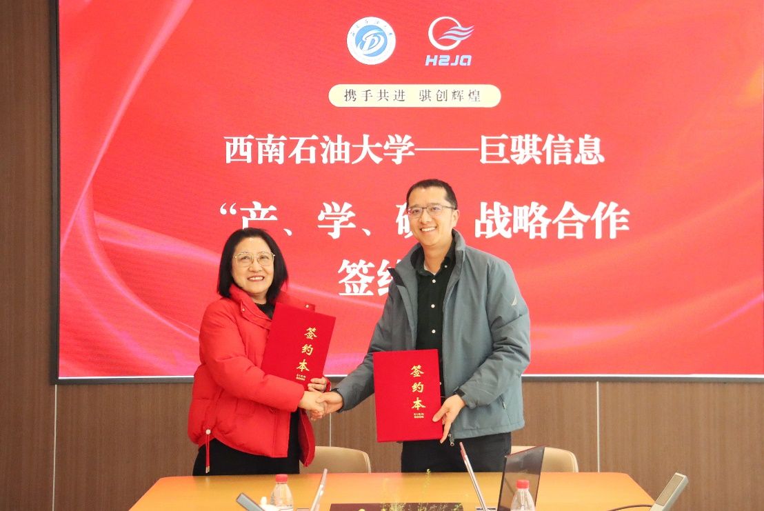 12月5日下午,西南石油大学电气信息学院与杭州巨骐信息科技股份有限公司在巨骐数智科技产业园签约“共建・共享・共赢”产学研框架合作协议,并举行了联合创新中心揭牌仪式。学院院长张安安,巨骐信息总裁颜玲珠,副总裁周翀、刘欣,以及研发总监许葛岚等共同出席签约仪式。此次校企携手搭建创新协作与人才培养平台,标志着双方产教融合迈入深度协同新阶段。
