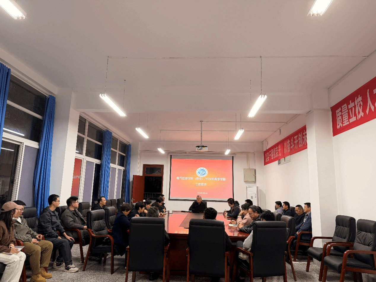 会上,谌海云介绍本学期教学任务,指出随着学院学科建设推进、学生规模扩大,本学期教学任务更为繁重,覆盖课程教学、实验实践、毕业设计等多方面,要求全体教职工以高度的责任感严谨履职,保障各项教学工作有序开展。谌海云回顾了上学期期末及寒假期间的工作成果,对教职工的辛勤付出予以肯定和感谢。假期学院顺利完成毕业班毕业设计开题、新学期教务核对、两级学生转专业办理等工作,走访多家企业并与相关企业签订校企合作协议,深化产教融合;同时做好学生补考安排与学习困难学生帮扶,为新学期工作筑牢基础。他还总结了学院办学成效,学生学风持续向好、学科竞赛与四六级通过率表现亮眼,深造就业态势良好;师资队伍结构优化、教学能力突出,实验条件逐步改善,校企合作深度不断拓展,同时也指出学院当前存在部分学生学习困难、深造就业意愿不足,实验设备短缺、师资数量不足且教师工作负荷较大等问题。