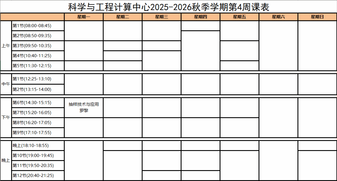 科学与工程计算中心2024-2025秋季学期第4周课表