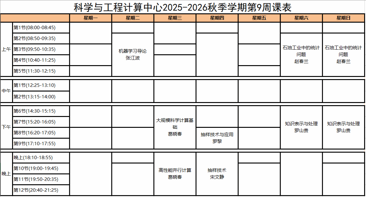 科学与工程计算中心2024-2025秋季学期第9周课表