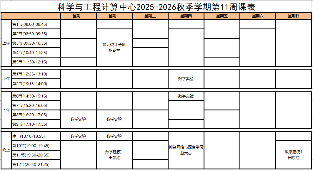 科学与工程计算中心2024-2025秋季学期第11周课表