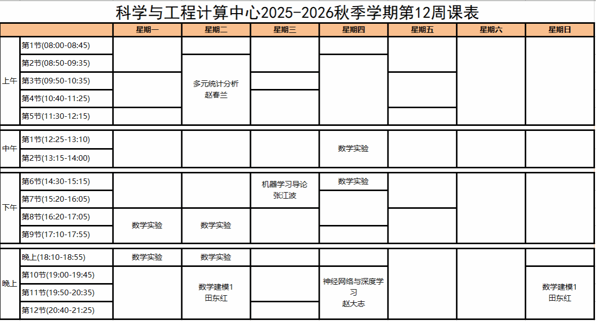 科学与工程计算中心2024-2025秋季学期第12周课表