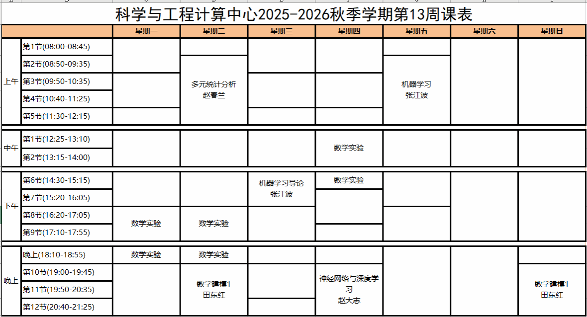 科学与工程计算中心2024-2025秋季学期第13周课表