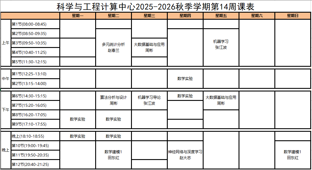 科学与工程计算中心2024-2025秋季学期第14周课表