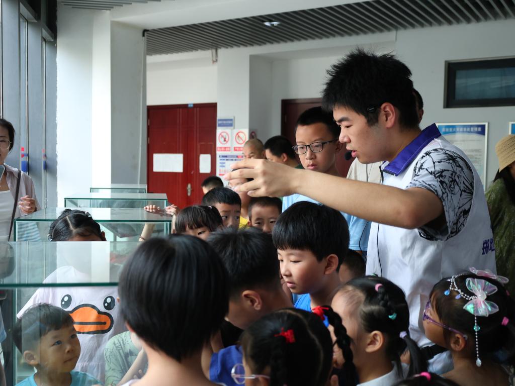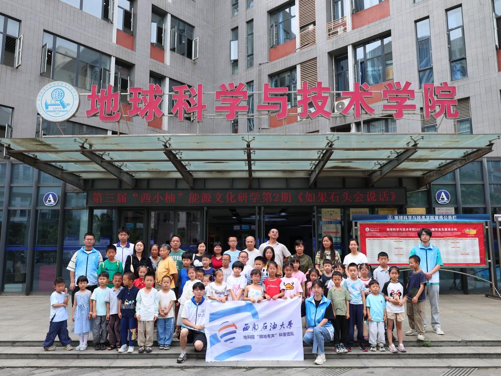 第三届"西小柚""科享荟"能源文化研学项目第2期《如果石头会说话》,于5月24日在明辨楼A区岩石展厅精彩开讲。30余组家庭通过观察花岗岩、页岩等典型岩石标本,在地球科学与技术学院掷地有声宣讲团成员廖航同学的耐心引导和通俗易懂讲解下,了解了岩石的形成过程、演化故事及在能源领域的重要意义,完成了一次从厘米级肉眼观察到微米级显微探秘的奇妙科学之旅。孩子们不仅聆听到岩石演化故事的生动讲述,更在马赛克手工创作中实现艺术与科学的创意碰撞,最终以"水晶手串传温情"环节升华亲子情感,现场温情涌动。