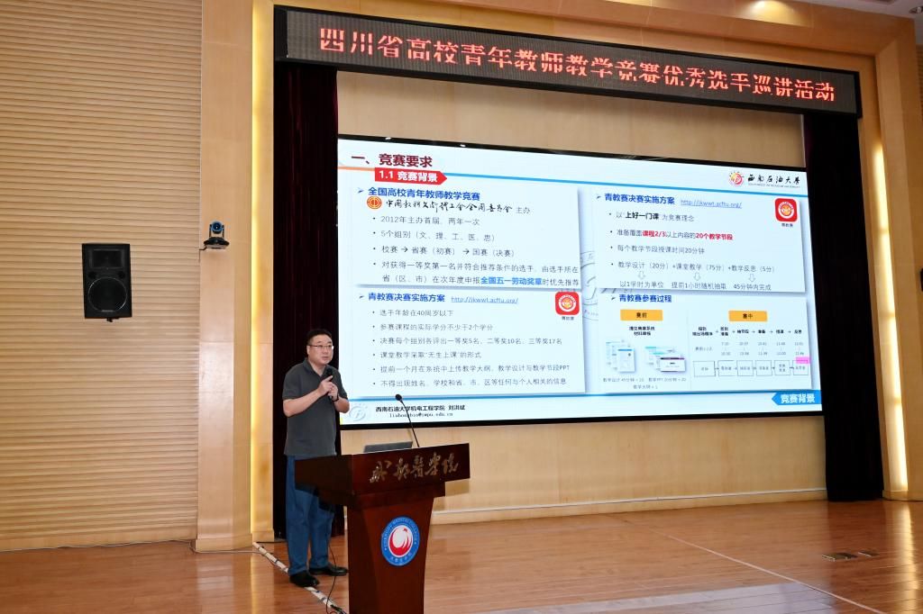 9 月 16 日,以 “天府青教风采 高校育人典范” 为主题的四川省青教赛优秀选手巡讲活动在成都医学院新都校区学术交流中心举行。我校机电工程学院青年教师,四川省五一劳动奖章获得者、首届全国高校青年教师教学竞赛工科组一等奖获得者刘洪斌老师应邀赴成都医学院开展巡讲活动。