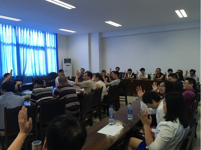2016年6月2日下午,电气信息学院在明理楼A401举行了第三届教职工代表大会第一次全体会议,正式代表和列席代表共27人参加了会议,会议由院工会主席邱红兵同志主持。