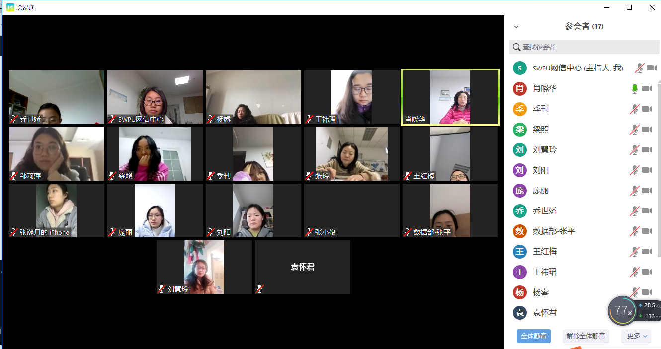 在今年“三八”妇女节来临之际,全国上下正处于抗击新冠肺炎疫情的紧要关头,面对新冠肺炎疫情,全校师生同心协力,通过网络和屏幕,正式开启了“线上新学期”。为了鼓舞抗“疫”斗志,坚定抗“疫”信心,充分发挥女教职工在抗“疫”工作中的担当和作为,为这场生命健康保卫战助力,网信中心工会决定在全体女教职工中开展以“巾帼同心抗疫情 别样三八展风采”为主题的文创作品大比拼和新型冠状病毒疫情防控知识抢答赛活动。因当前处于特殊时期,两项活动均在线上开展,中心全体女职工全程参与。