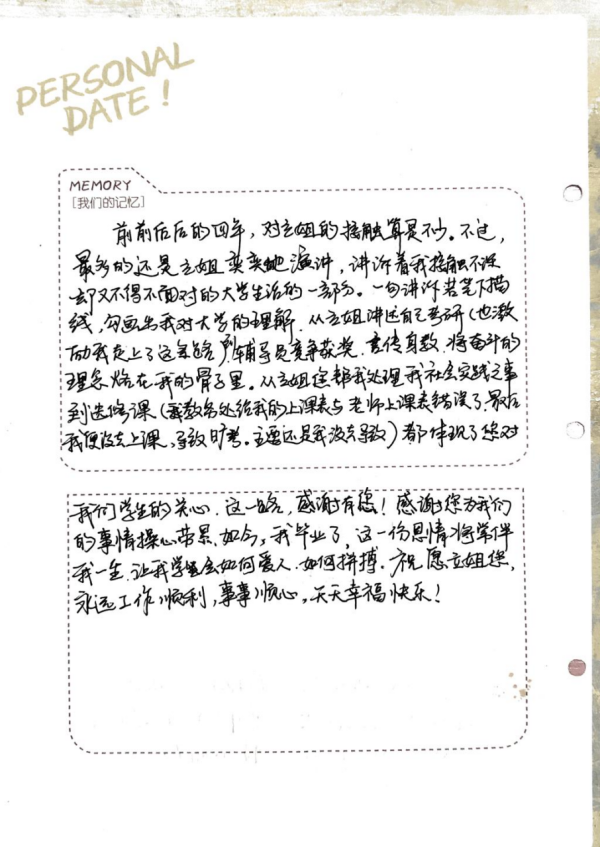 学生临近毕业总会写上一段感谢、祝福的话语送给舒小立,这也是舒小立视为自己最珍贵的礼物。