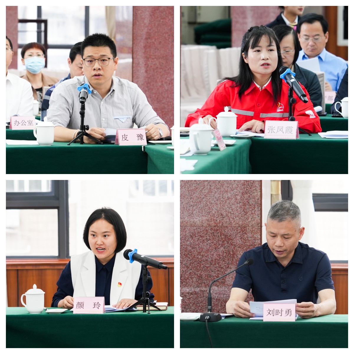 省总工会在家领导彭闯、李茂林、苗勇、徐真彦、钟验鹰、王超,省总工会厅级干部,省总工会机关各部门(产业)和直属单位负责人参加会议。