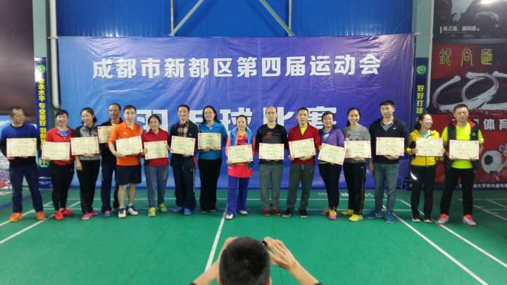 11月3--4日,新都区第四届全运会羽毛球比赛在康培羽毛球馆进行,本次比赛参与人数多、项目齐全,每个项目分别设置8组,共计120多名运动员参与了比赛,新都区诸多部门领导带头参与,比赛过程中也展示了较高的竞技水平。通过两天紧张激烈的比赛,各项目产生了前8名。我校代表队在混合双打、男子双打比赛中成绩突出,其中,由王昱/骆婵组成的混双组获得第五名、由杨仪伟/崔发展组成的男双组获得第八名。(教职工羽毛球协会供稿)