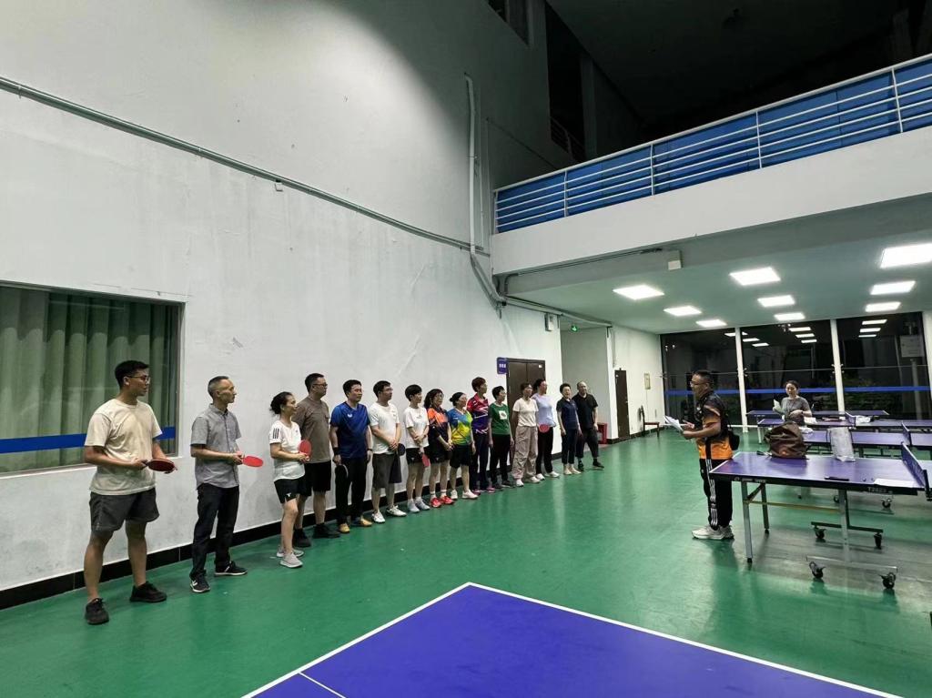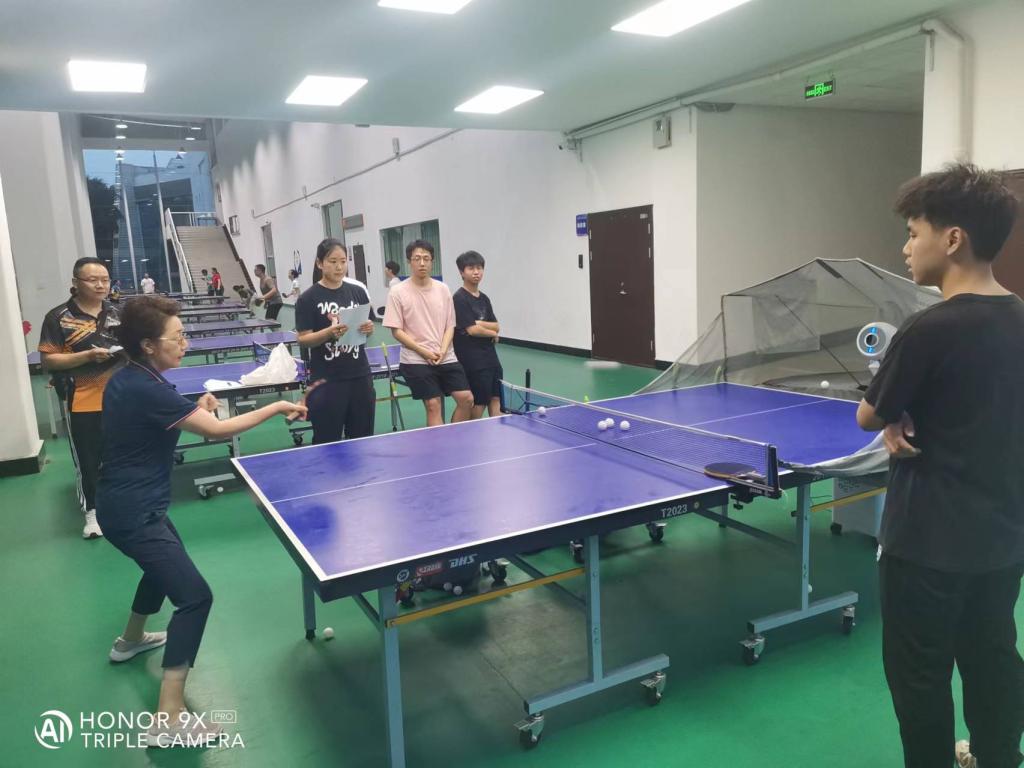 6月26日晚,校教职工乒乓球协会在体育馆进行本学期最后一堂培训教学课,并进行了“期末考试”。校乒乓球协会30余名爱好者参加。