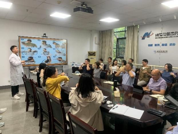 王医生则从中医养生的角度切入,提出体重管理需配合适度运动与经络调理。针对中心教职工日常伏案工作易引发的肩颈酸痛,他现场讲解了肩颈舒缓技巧与穴位按摩的中医原理,并亲自示范每一个动作的操作要领。随后,他带领现场教职工展开各项动作练习,让大家在互动中掌握实用的保健动作,体验到中医经络疏通的效果。