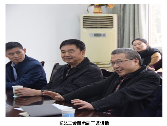 苗勇副主席感谢学校对省教科文卫、省总工会的支持,祝贺我校在劳模创新工作室命名中取得的优秀成绩,创新是高校教学、科研发展的动力,工会要继续为教职工“跑好路、服好务”,搭建平台助力于学校的事业发展。