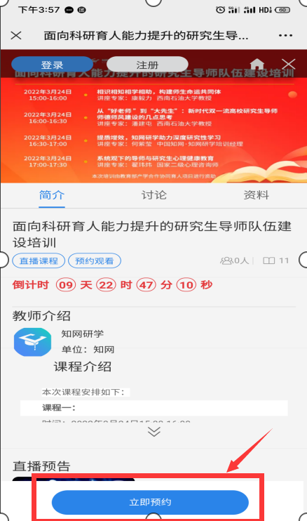 步骤1:打开报名和直播网址:https://k.cnki.net/CInfo/Index/17617