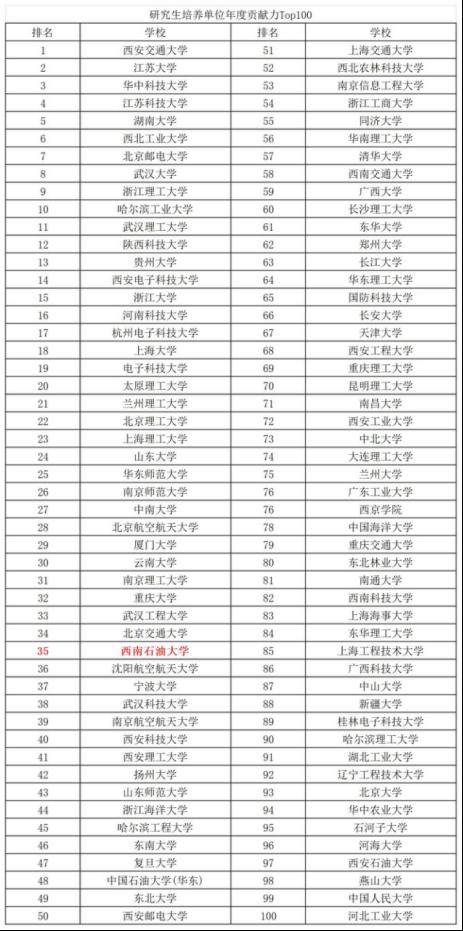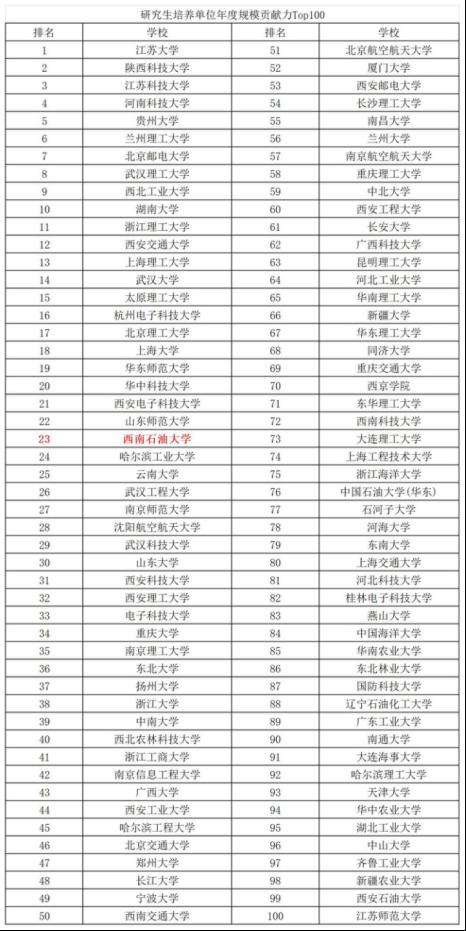 日前,中国学位与研究生教育学会发布了《中国研究生创新实践系列大赛2023年度报告》,公布了研究生培养单位年度贡献力T0P100排行榜,我校第35位,位列四川省省属高校第一;年度规模贡献力第23位,位列四川省高校第一。