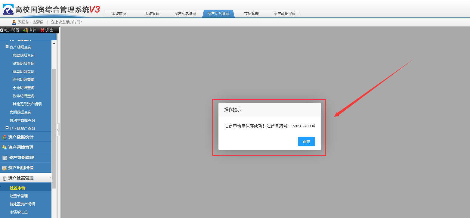 第二步:登录资产管理系统(国资系统),登录步骤详见国资处网站下载中心,固定资产家具选择资产综合管理,低值家具选择存货管理,点击处置申请,其余步骤相同