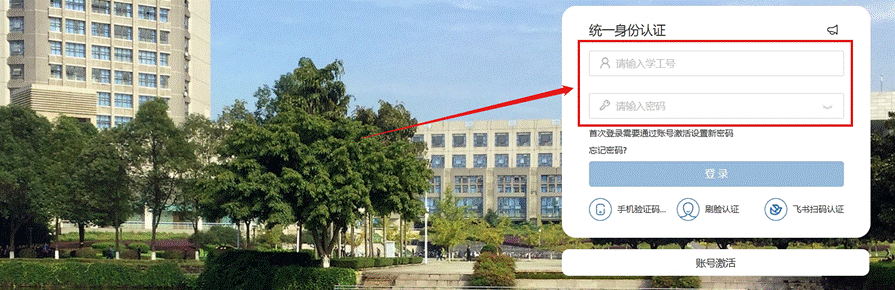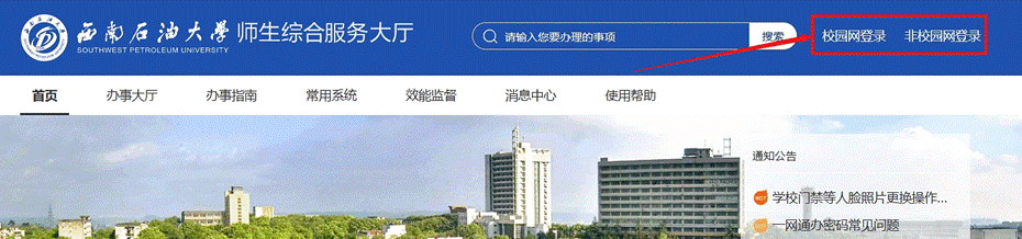 第二步:选择校园网或非校园网登录,(若一网通办已登录则直接进入,若未登录,则需要输入账号(工号)及密码)