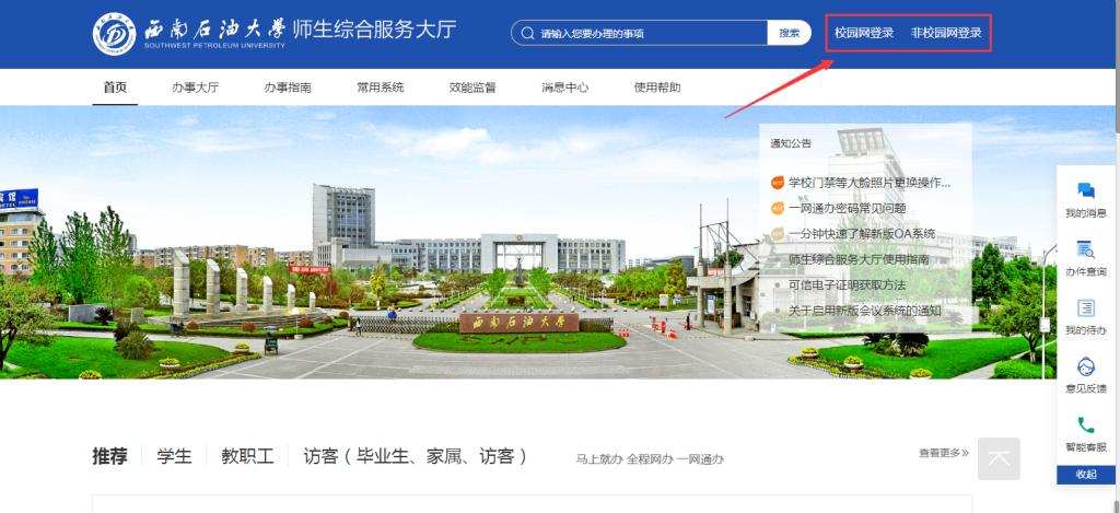 第一步:登录校网,点击一网通办