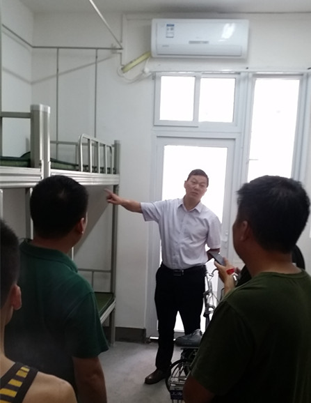 检查组首先来到学生寝室。在查看了寝室维修改造工程情况后,彭尚源要求后勤维修人员在学生入住前对铁架床及家具等再次进行全面检查,保证学生开学能顺利入住。
