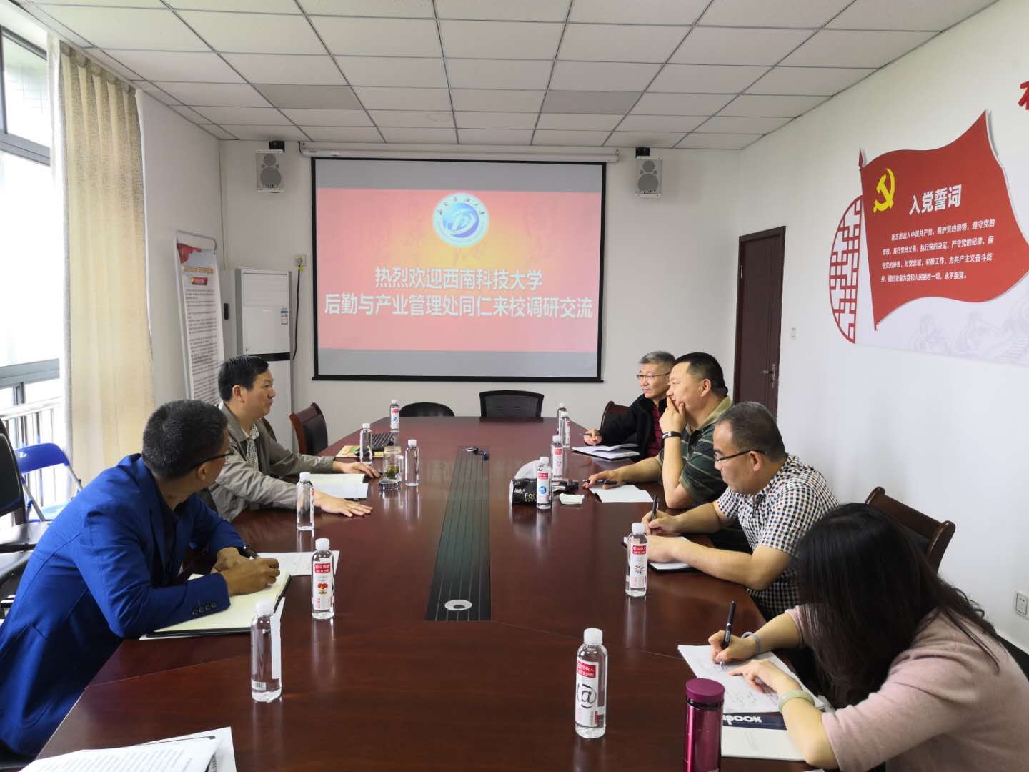 4月17日下午,西南科技大学后勤与产业管理处处长张克武一行4人到国资处调研后勤托管工作,调研会由国资处处长彭尚源主持。