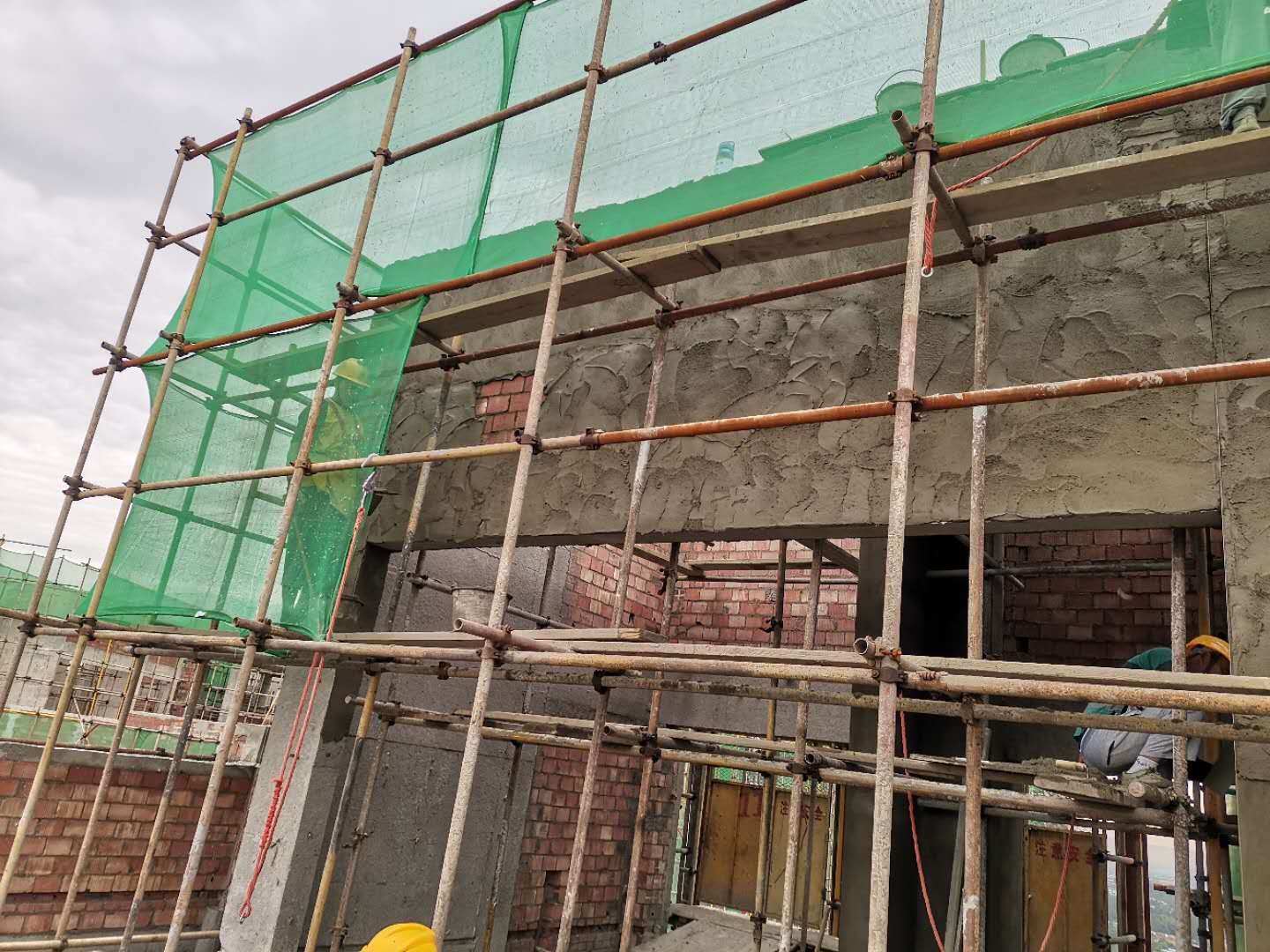 屋面层花架梁抹灰完成50%,构造柱14层完成;轻质隔墙14层完成。内墙抹灰完成2层。 |