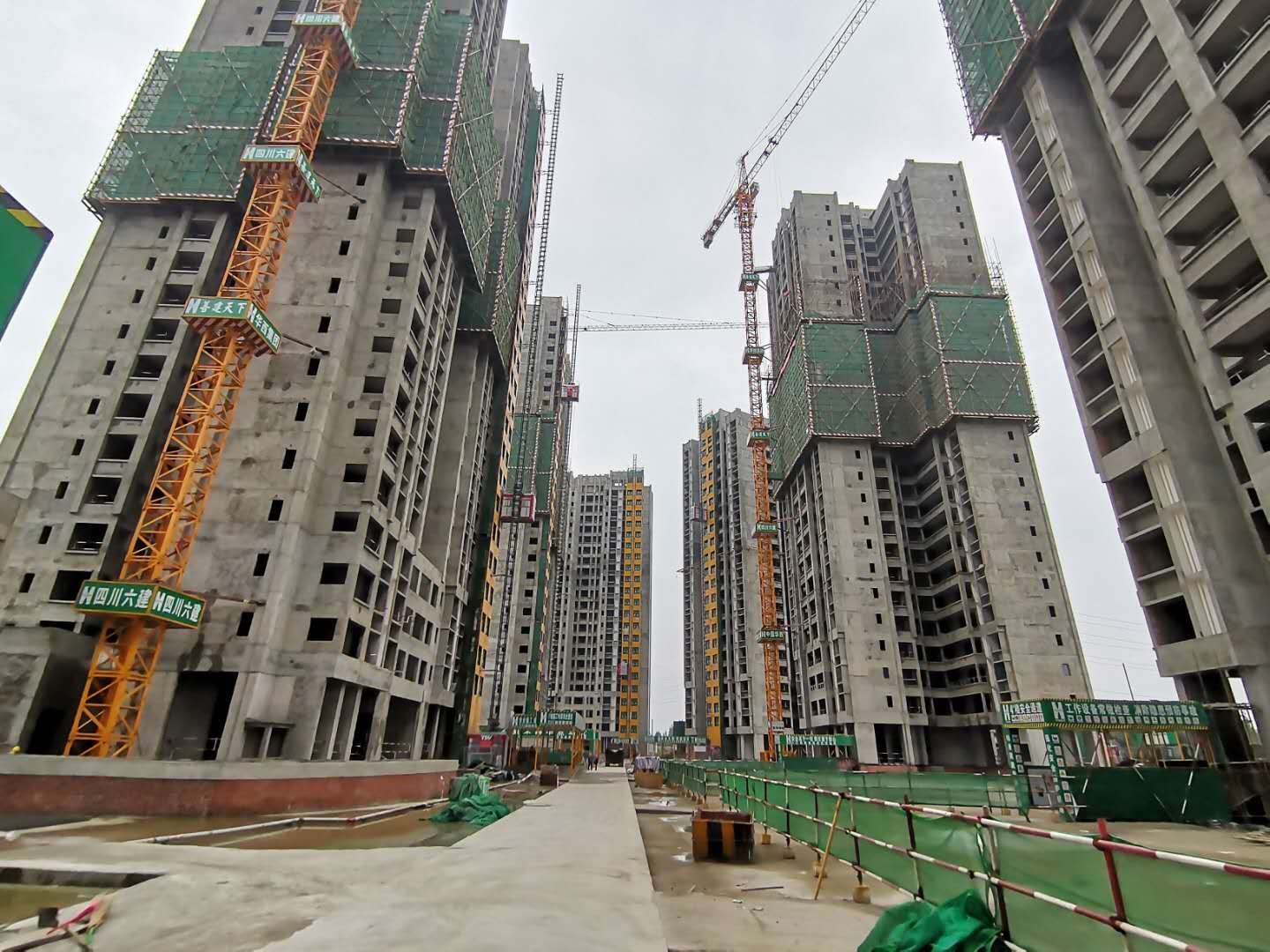 明德博创公司负责人介绍了项目施工进展:3、4号楼内外墙抹灰全部完成、外架拆除完毕,其余各楼栋内外墙抹灰及外架拆除工作均已接近尾声,同时卫生间、阳台、厨房防水工程、给排水、地坪等都同时进行施工,项目整体施工进度稳步推进。