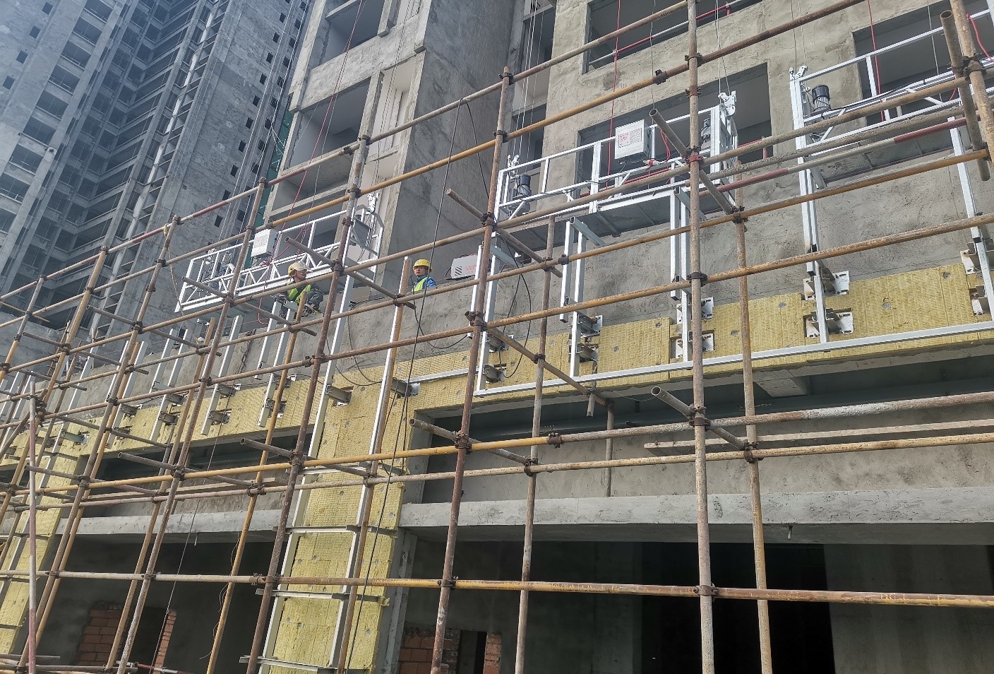 商铺幕墙预埋板安装完成;内墙墙面第一遍腻子完成7-9层(24层往下施工);外墙一体板用的吊篮安装完成,通过验收;给水地平管完成13-23F。 |