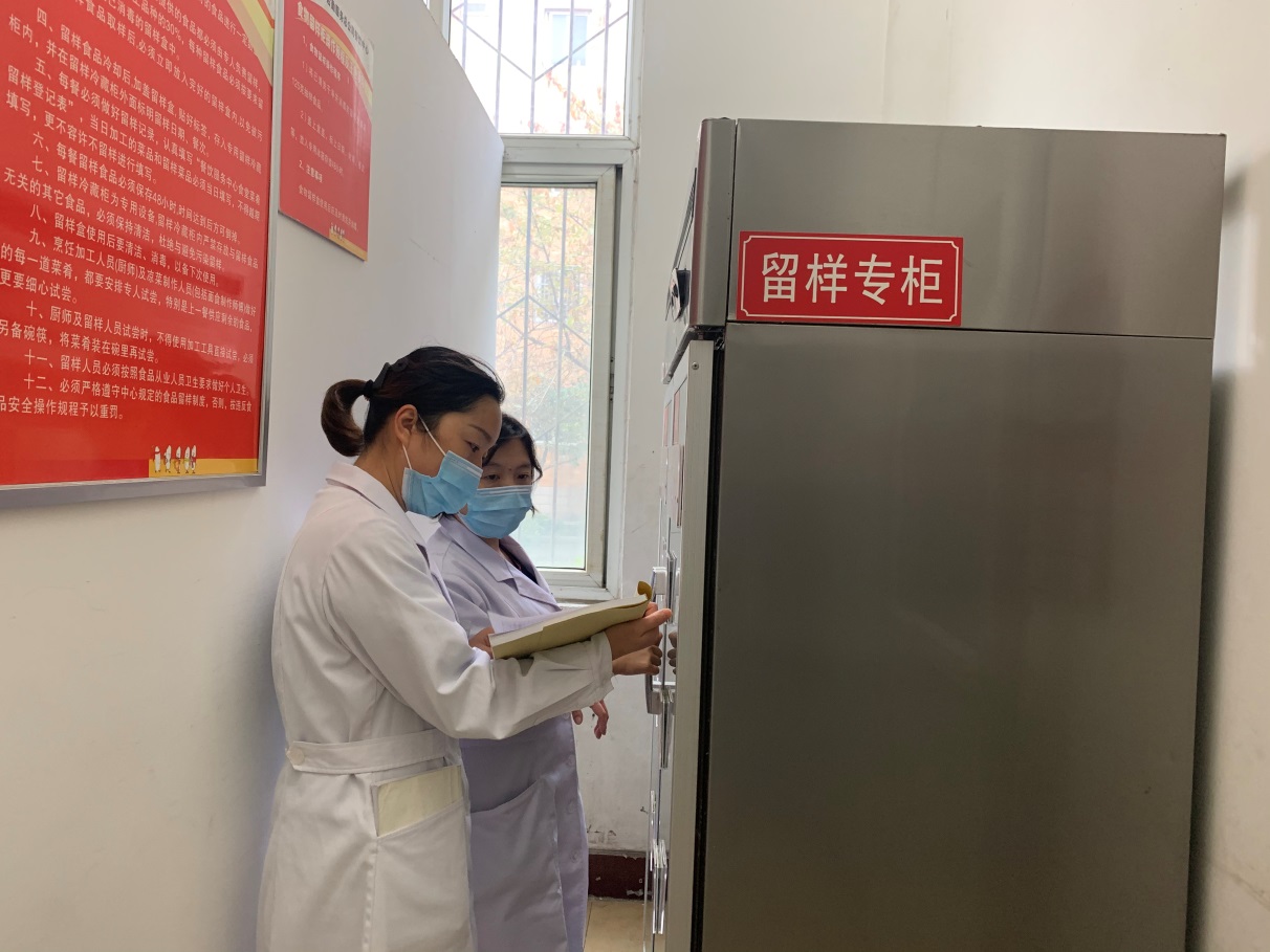 检查组一行深入各大食堂后厨操作间、留样间、库房、消洗间等区域,重点对食堂从业人员卫生健康管理、环境卫生、消防安全、食品留样、食品加工、原材料保存、台账管理以及餐具消洗等情况进行了检查,并就十月份食堂食品卫生安全整改情况进行了“回头看”。