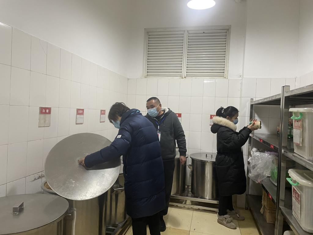 检查组先后深入教工食堂、学生一食堂、二食堂、三食堂的留样室、操作间、办公室、库房等区域,重点检查了从业人员健康证、每日体温检测、消毒消杀、入库查验、环境卫生、食品贮存、食品留样、食品清洗等情况。