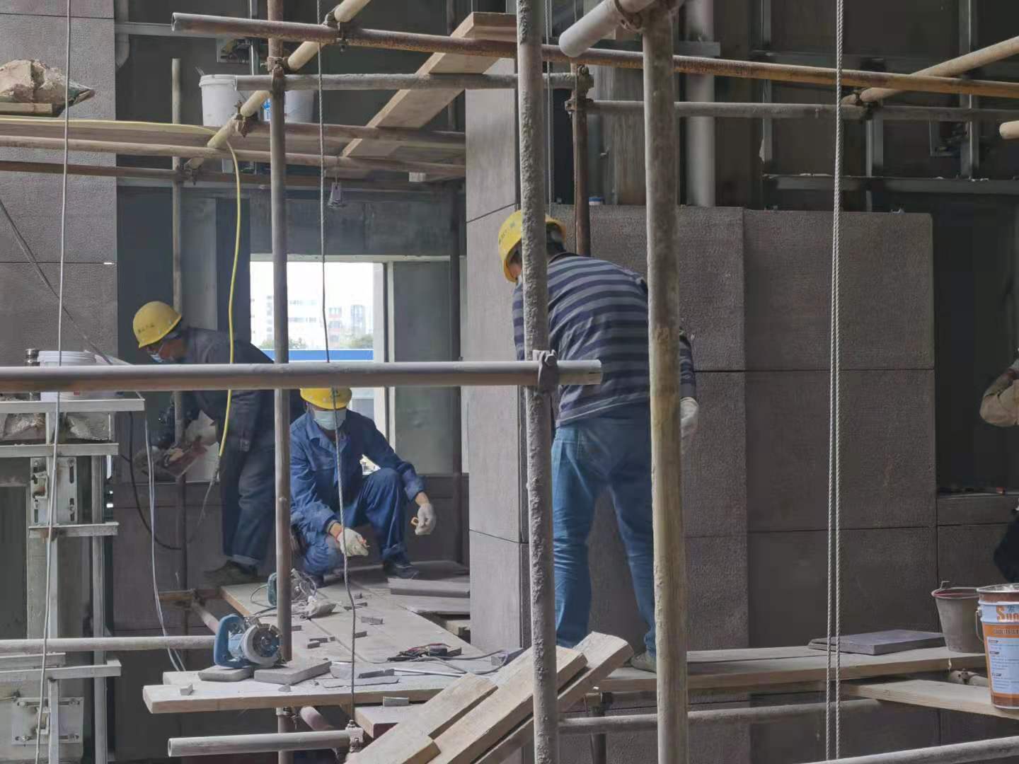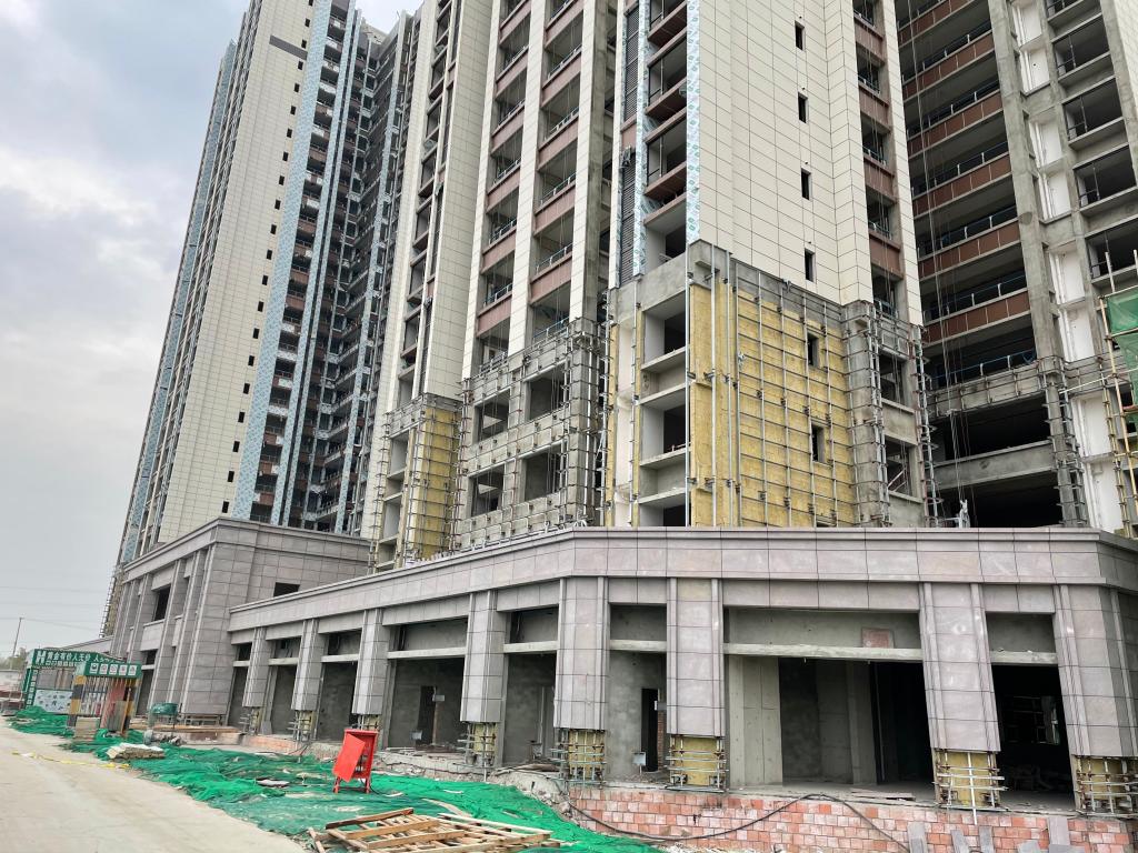 明德博创公司负责人介绍了项目施工进度:各楼栋窗框已基本安装完毕,入户门已进场待安装;外墙一体板及幕墙石材安装工作陆续开展,预计4月底全部完成;电梯及公共区域安装材料分批到场安装,自来水、天然气开始施工。项目整体工作正有序复工,施工按进度计划进行。