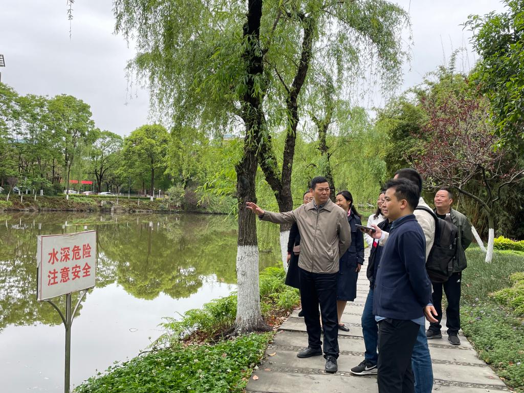 巫晓兵介绍了我校校园建设历史沿革、校园文化、绿化建设等基本情况,并详细阐述了学校绿色校园创建的工作思路。他表示,绿色校园建设是深入贯彻落实习近平生态文明思想,践行绿色发展理念的生动体现。绿色校园创建旨在提高校园环境建设、建筑节能、垃圾分类回收、智能技术应用等工作水平,深入培育绿色校园文化,进一步提升师生生态文明素养。我们在创建工作中,要深入贯彻国家五大发展理念,将文明校园和智慧校园建设一起纳入进来,通盘考虑,既立足当下,又着眼未来,注重工作的前瞻性、计划性、整体性以及长远性,实事求是、因地制宜地开展特色化、创造性创建工作,努力将学校打造成新都片区的一张靓丽名片,彰显校园深厚文化底蕴的同时,切实带动学校周边共同践行绿色发展理念,充分发挥高校服务社会的重要职能。