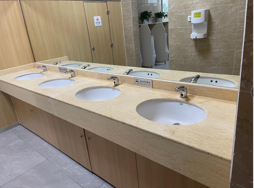 思学楼有厕所36个,自2002年投入使用至今,出现设施老旧、管网堵塞漏水、通风不畅、灯光暗淡等问题。国有资产管理处从为师生“做好事、解难事、办实事”出发,对思学楼厕所问题进行全面排查梳理,调研了大型商场、高铁站、机场等公共场所厕所情况,邀请专业公司设计改造方案,重新设计厕所布局,更换感应水龙头、洗手台、仪容镜、脚踏冲水阀等,增加手机搁置板、除臭机、垃圾桶等设施,设计“请节约用水”等文明标语及挂画,面貌焕然一新。