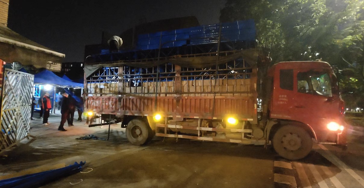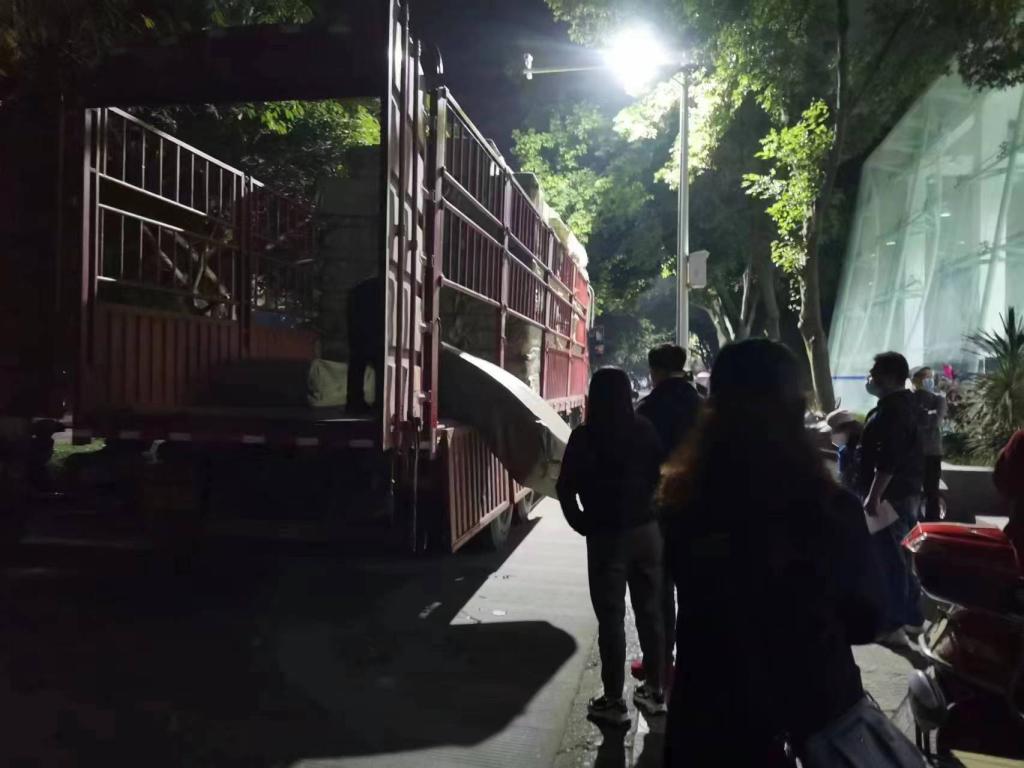 “满载物资的两辆大货车,需要大量人手来完成下货、组装和搬运等工作,我们要联合校内兄弟部门一起干。”李龙珂打电话汇报了遇到的困难。国资处马上联系校工会、后勤部等部门,一起组织志愿者,协调运送车。晚上21:30左右,第一辆送货车到达学校,陈维组织志愿者一起下货、组装、装车、分发……经过5个小时的辛勤工作,20日凌晨3点左右,所有货架分发到了每栋教职工单元楼下。