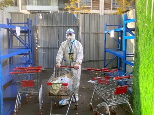 国资处员工参加香城学府51栋住户的物资转运和饭菜配送志愿服务