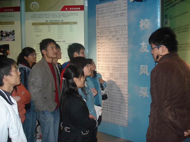 为更好的领悟科学发展观的科学含义和重要意义,进一步了解我校对科学发展观的时间及成果,化工院应用化学党支部于11月20日下午组织全体党员参观我校校史馆。 在解说员的引导下,大家参观了“石油魂”浮雕,南充、成都两校区的模型。从宣传墙的图片中,大家不仅了解了我校从1958年建校到2008年的发展历程,还认识了五十年来各代领导人和优秀的校友。解说员还给大家介绍了一些学校的科技带头人的事迹和国家及省部级领导人的赠言,并一一介绍所陈列的获奖证书。最后,大家还在院系介绍栏进一步了解我校的各个院系及其特色,并对自己专业在社会中的应用有了更深的了解。 相信通过参加校史馆,学生党员不仅对我校在科学发展观的践行有深入了解,还会从中受到鼓舞,以史为鉴,严格要求自己,为石油工业的明天而奋斗。