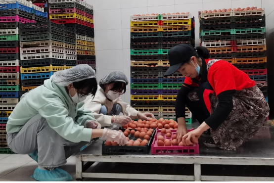 学生配合食堂员工进行鸡蛋分拣