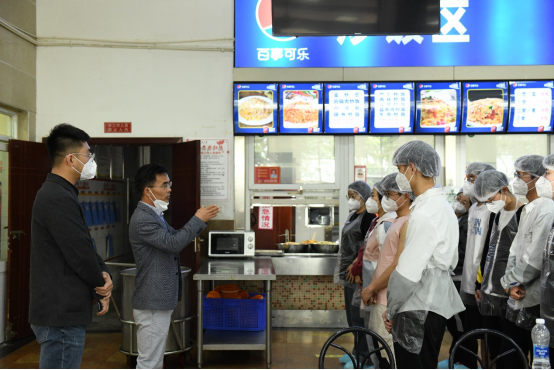 学生与食堂师傅交流学习