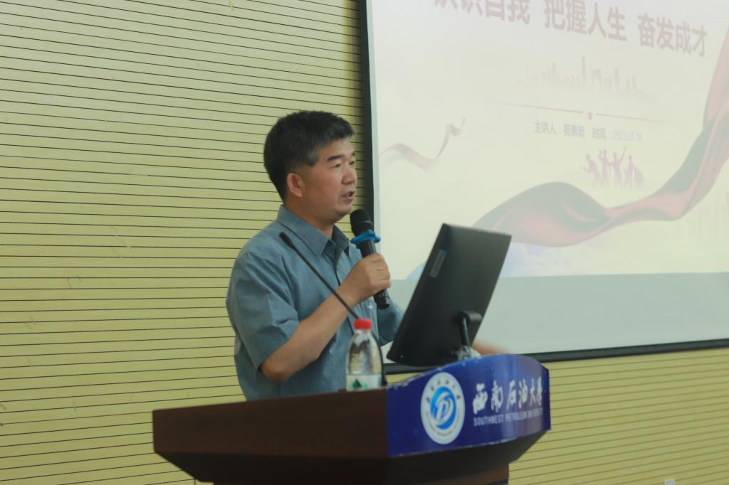 为深入学习贯彻习近平新时代中国特色社会主义思想,扎实开展好主题教育相关工作,5月18日下午,化工院邀请四川省公安厅杨素宏老师作了题为《认识自我,把握人生,努力成长》的专题辅学报告。化工院党委书记王兵、党委副书记、纪委书记陈刚、部分辅导员和2021级全体同学参加了报告会,报告会由陈刚主持。 报告会上,杨素宏老师通过解读党的二十大报告内容,指出党和国家对青年学子成长成才给予厚望,围绕如何成为德智体美劳全面发展的社会主义合格建设者和可靠接班人,杨老师从 “认识自我,把握人生,努力成才”三个方面展开具体讲解,他以自己的军旅生涯和求学经历,勉励同学们艰苦奋斗、自律自强、报效祖国,鼓励同学们多读书、读好书、好读书,在书籍海洋的认识自我、热爱生活、成长成才,不断提高思想品德、文化素养、专业素质和身心健康水平,促进自身全面发展。 整场报告会气氛热烈,杨素宏老师用激情澎湃、铿锵有力的语言,引起了同学们的强烈共鸣。此次报告会提升了化工学子的思想政治理论水平,激励同学们以更加饱满的热情投入到今后的学习生活中,踔厉奋发,自强不息,努力成为堪当民族复兴大任的时代新人。 图文/程兴涛 审核/程美容