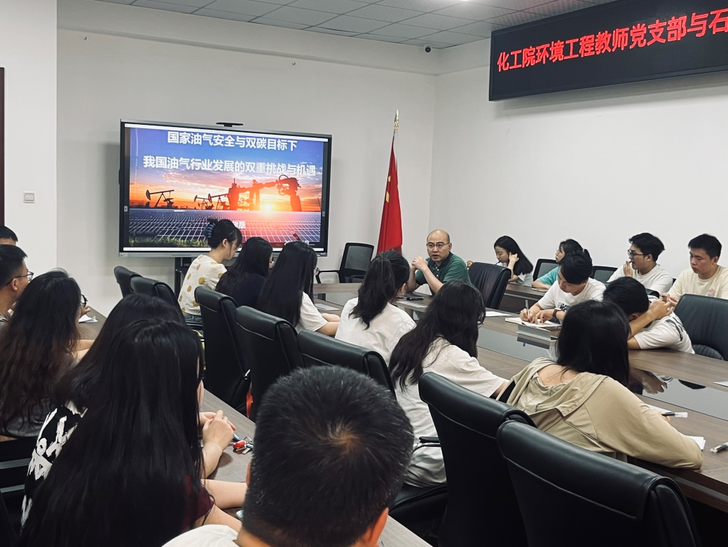 为深入开展学习贯彻习近平新时代中国特色社会主义思想主题教育,围绕国家“碳达峰、碳中和”战略,6月27日,化学化工学院副院长、博士生导师唐鋆磊以“国家油气安全与双碳目标下我国油气行业发展的双重挑战与机遇”为题,为化工院研究生第三党支部全体党员上了一堂主旨鲜明,思想深刻,理论联系实际的专题党课。 实现碳达峰碳中和是中国高质量发展的内在要求,也是中国对国际社会的庄严承诺,我国力争2030年前实现碳达峰,2060年前实现碳中和,是党中央经过深思熟虑做出的重大战略决策,事关中华民族永续发展和构建人类命运共同体。 本次党课共分为5部分,分别是国家油气安全战略背景、形势和行动策略、碳达峰碳中和背景、中国能源安全与发展战略和油气行业的机遇与挑战,最后讲述从清洁能源到碳循环,油气企业支撑能源独立与碳中和之路。唐鋆磊将党课内容与研究生党员的实际生活联系起来,强调了温度上升对人类生存生活的影响,向大家表达了殷切期望,号召研究生党员努力学习,发挥科研工作者的贡献精神,致力于清洁能源发展与温室气体控制等研究工作,为国家应对气候变化贡献出青春力量。 据悉,本次活动为西南石油大学大学生思想政治教育特色活动项目:“学”“讲”“做”三力齐发——导辅协同推进主题教育在研究生党员中走深走实系列活动之一,本次党课深化了研究生党员关于国家油气安全和双碳目标对我国油气行业发展的认识,激发了同志们的爱国之情、报国之志,力争为祖国油气行业发展贡献自己的力量。全体研究生党员将在科研与学习上奋发向上,积极进取,为祖国能源建设添砖加瓦。