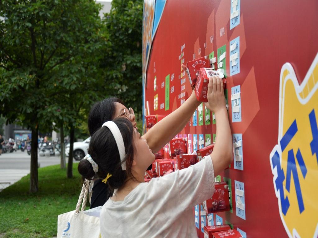 图2 新生在明德楼报道注册 图3 现场抽取盲盒的新生
