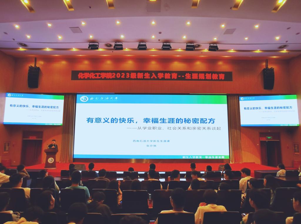 残云收夏暑,新雨带秋岚,化学化工学院2023级本科新生进入大学校园,为了让新生树立生涯发展的意识,了解自己的职业兴趣,提前做好规划,化工院于9月28日上午,邀请西南石油大学招生就业处职业生涯指导中心主任张亦弛老师,开展了以大学生职业生涯教育为主题的专题讲座,化工院2023级全体本科新生参加活动。 张亦弛老师从学业职业、社会关系和亲密关系三个方面,用生动案例和幽默的表达方式为大家讲述大学生活中可能遇到的生涯困惑与机遇,引导大家对生涯规划的概念进行思考。鼓励大家要培养“以终为始”的目标意识、“基于STAR法则”的行动意识和“快乐=能力-期待”的应变意识,并鼓励同学们充分发挥自己的潜力,发扬创新的精神,并结合自身优势,让大学成为自己人生阶梯最精彩的一部分。 此次讲座的开展,帮助同学们更好的树立生涯发展意识,培养生涯规划能力,同学们对自己未来发展有了新的认知和自信,获益良多。